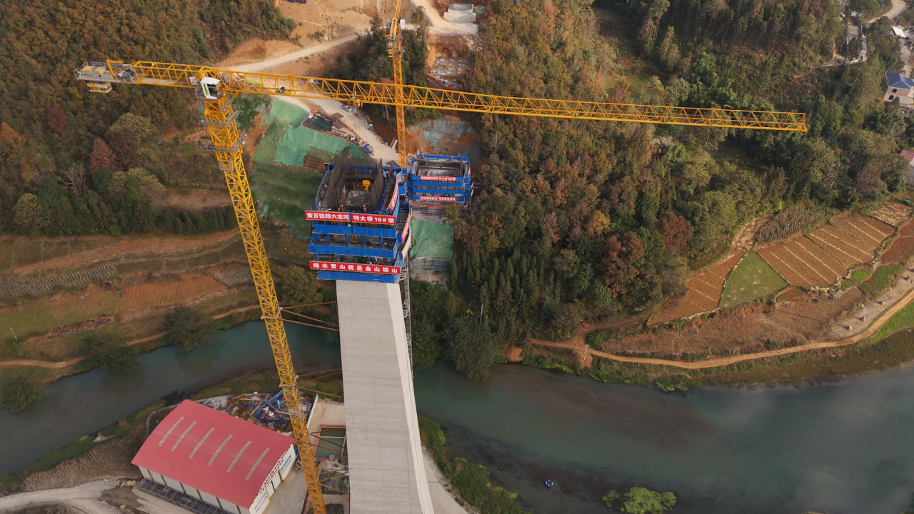 面对复杂的喀斯特地质,项目部以技术赋能安全生产全过程。在六志河特大桥18号墩施工现场,全封闭液压爬模系统稳步攀升,无人智能塔吊精准吊运建材,有效降低高空作业的安全风险;面对25号墩的串珠型溶洞地质,桩基垂直度控制系统与混凝土智能温控技术协同发力,依托传感器数据实时调控,从源头遏制了桩基偏位、混凝土开裂等质量安全隐患。
