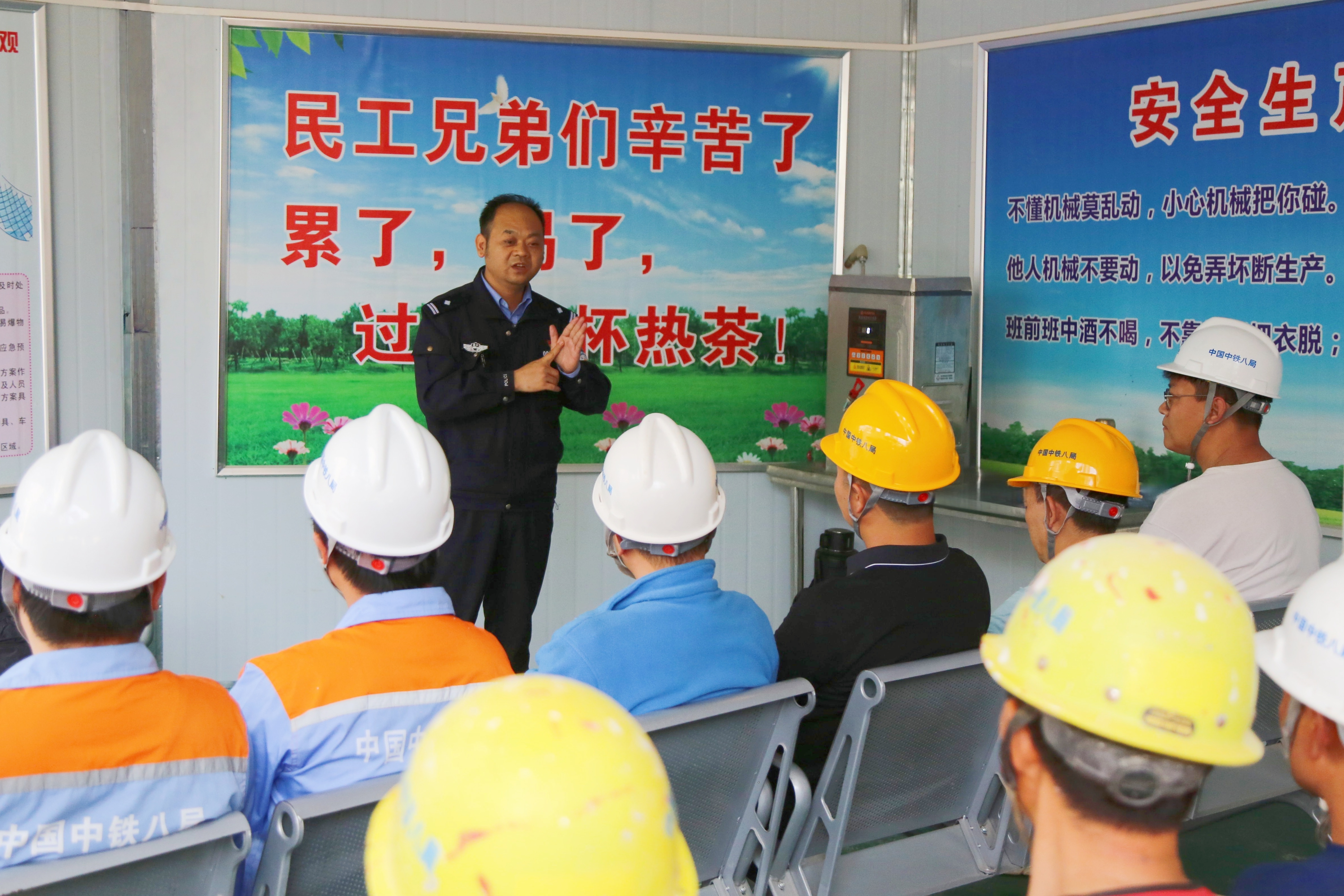 活动现场,来自贵阳市云关乡派出所的民警为30余名现场作业人员带来了专题普法安全宣讲。宣讲中,民警结合建筑施工行业属性,系统普及了《中华人民共和国国家安全法》《中华人民共和国反电信网络诈骗法》《中华人民共和国消防法》等关键法律法规,并重点围绕施工现场保密管理细则、可疑人员与异常行为识别方法、施工信息安全防护等核心内容,用通俗易懂的语言拆解法律知识点,引导广大工友将国家安全意识融入岗位操作、融入日常生活。为使普法知识更加入脑入心,活动还设置了宣传视频展播、安全风险情景模拟等多元环节,采用“案例解析+互动体验”的模式,生动剖析违法犯罪等行为的严重危害,让一线作业人员在沉浸式参与中深刻理解“国家安全人人有责、人人尽责”的核心要义,进一步树牢总体国家安全观和安全生产红线意识。