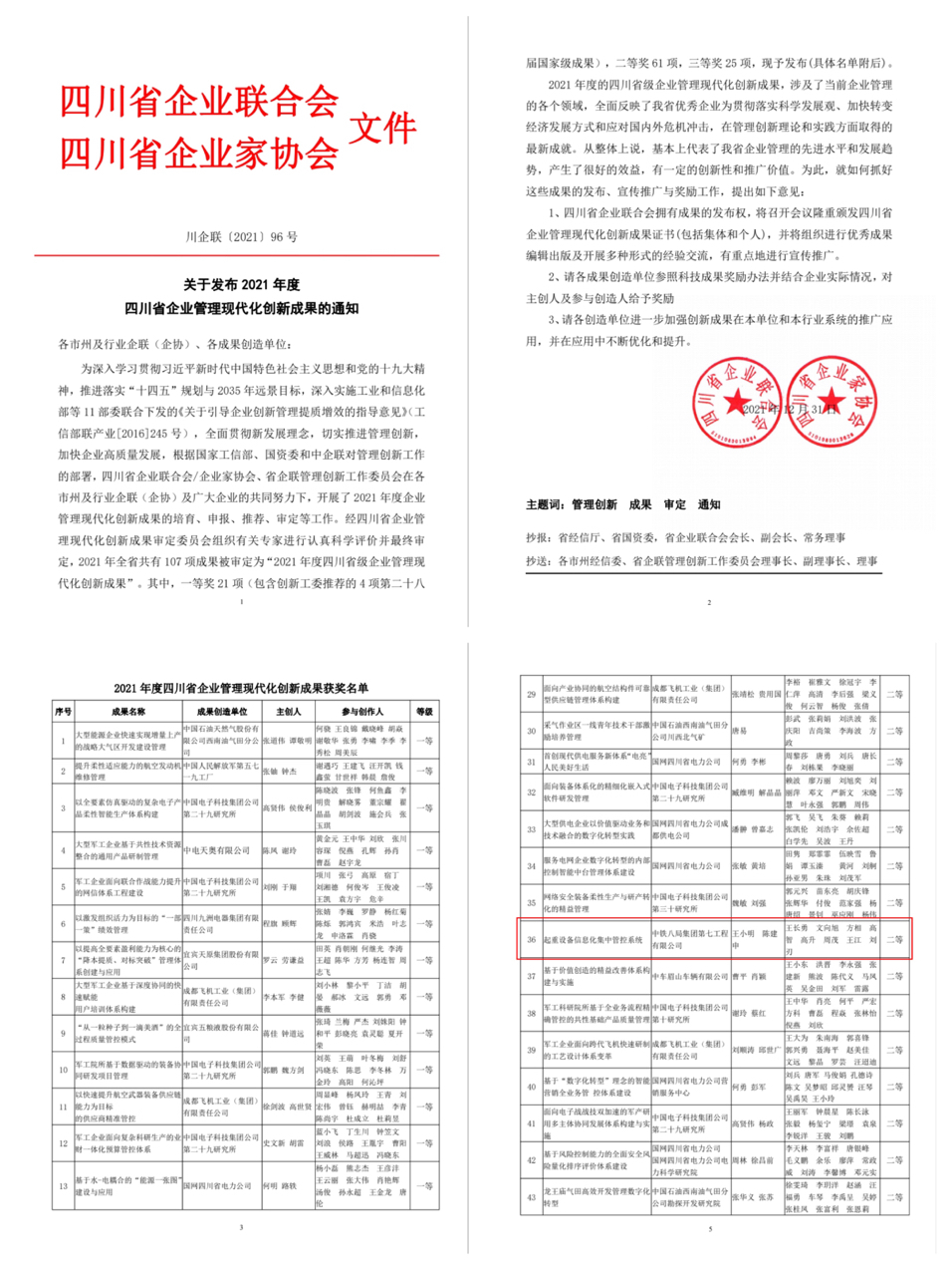 近日,从四川省企业联合会、四川省企业家协会处获悉,七公司研发的《起重设备信息化集中管控系统》成果获得2021 年度四川省企业管理现代化创新成果二等奖。
