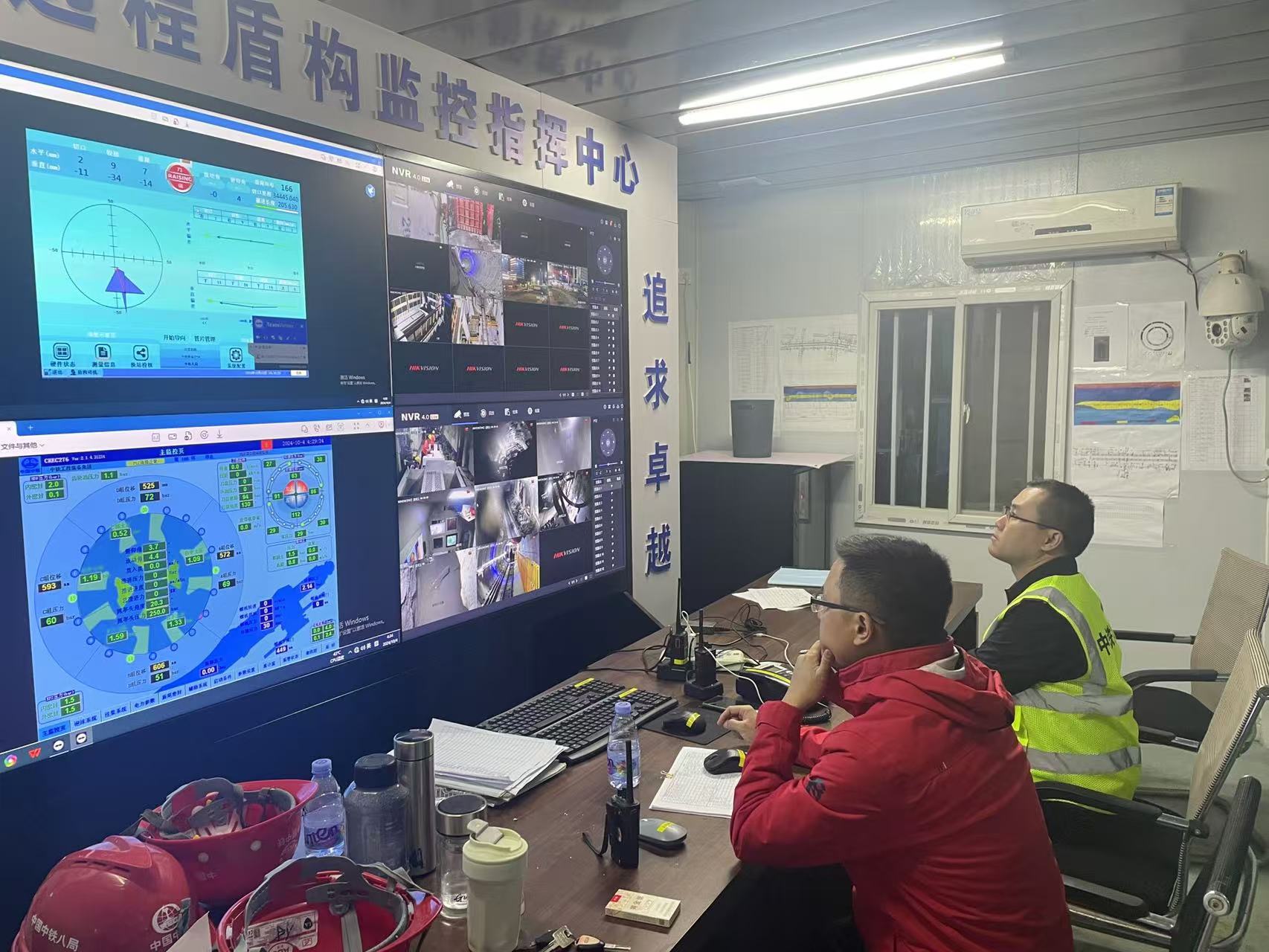 为保障盾构掘进施工安全、质量、进度,项目部上下齐心、群策群力,提前分析研判区间地质条件,多次组织召开专家研讨会,有针对性地选择适合该地质条件的刀具、制定保障措施,确保施工生产安全。同时,为确保盾构机安全平稳推进,项目部充分运用趋势控制法合理设置掘进参数,满仓掘进保障土仓压力,渣土、同步注浆执行“双控”制度避免超方;严格执行领导带班、三级交底、施工旁站、施工预警等制度,压紧压实各管理层级责任,确保施工本质安全。在全体员工的共同努力下,盾构机在预设场地精准出洞,实现区间全过程“零预警、零沉降”的目标。