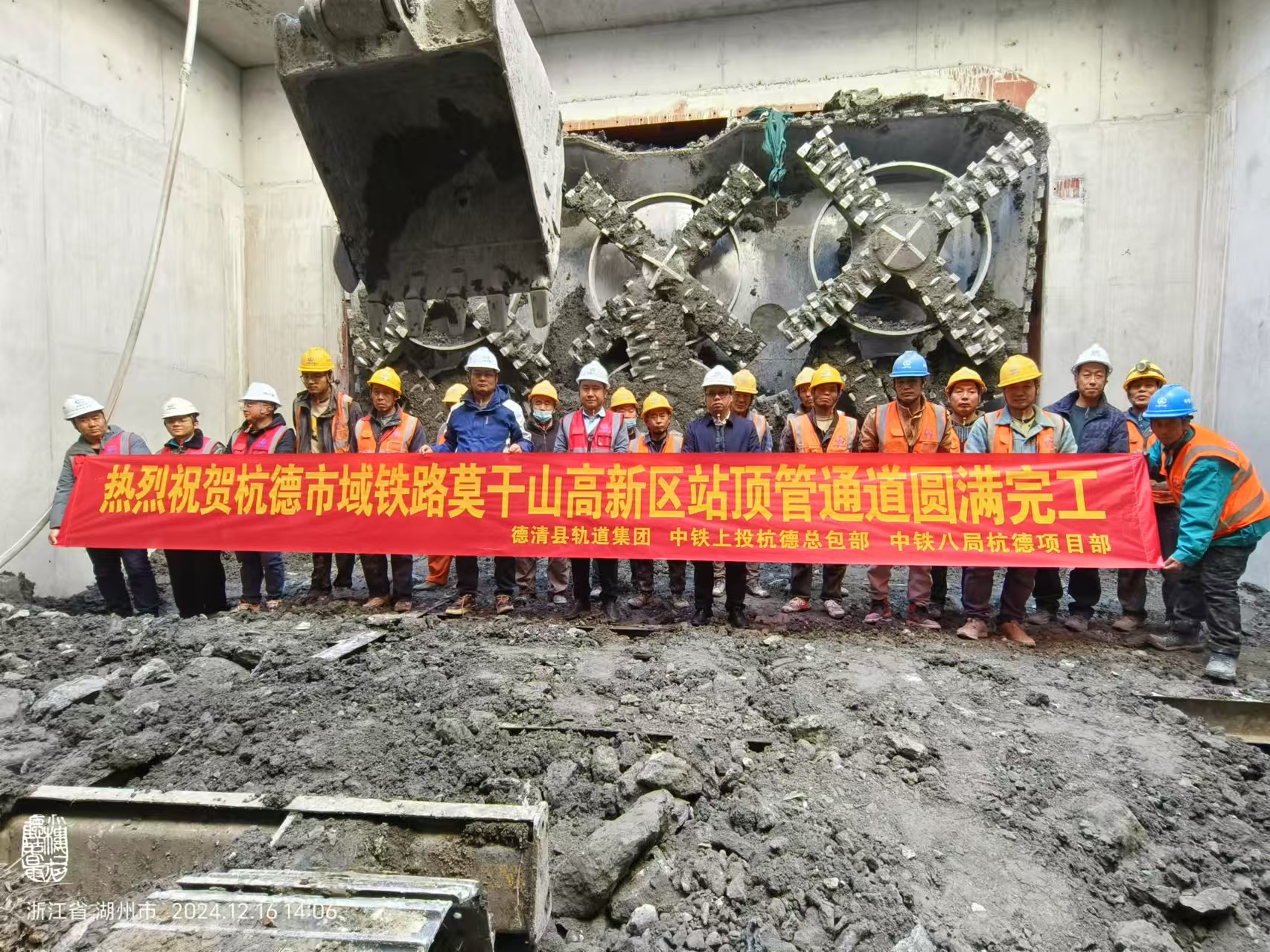 据了解,杭德市域铁路作为浙江省第一个批复的市域铁路项目,承担着串联城市发展的“脊柱”通道作用。莫干山高新区站出入口顶管工程的顺利完工,标志着杭德市域铁路工程建设土建I标段所有工程取得决定性胜利,为杭德市域铁路全线贯通奠定了坚实基础。
