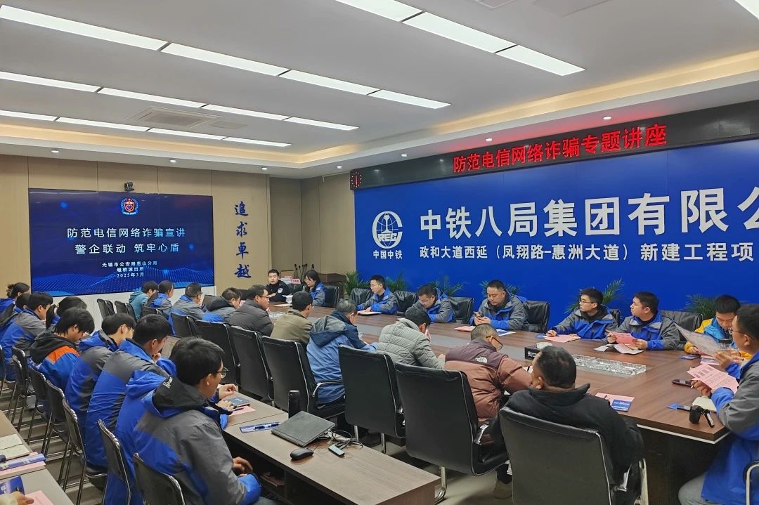 为进一步增强一线员工、劳务人员的安全意识以及对于诈骗手段的识别与防范能力。3月10日,无锡政和大道项目党支部与无锡市公安局惠山分局堰桥派出所党支部开展警企结对共建活动,邀请堰桥派出所张景荃警官到项目进行“反诈宣防·心盾行动”主题讲座。