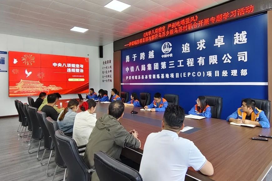 伊犁昭苏项目党支部与察汗乌苏乡新乌苏村党支部联合开展“共学八项规定 严刹吃喝歪风”主题活动,以理论学习与整治动员相结合的方式深化作风建设。活动中,双方以“理论讲解+案例剖析”模式,系统学习中央八项规定制定的历史背景与实践意义。项目党支部书记曹鹄结合工程领域廉政风险点,围绕“厉行节约”条款深入阐释,并以基层典型案例揭示违规吃喝对党群关系的危害。专题讨论环节,双方集中观看警示教育片《“吃”祸》,针对“隐蔽场所吃喝”“超标准接待”等基层易发病症开展自查互评,通过“案例警示+互评互查”筑牢思想防线。此次联学既深化了企村对深入贯彻中央八项规定精神学习教育的理解,更以“学习+整治”双轮驱动,为乡村振兴与基层项目建设注入廉洁动能,推动廉洁之花在基层沃土扎根绽放。(易婷)