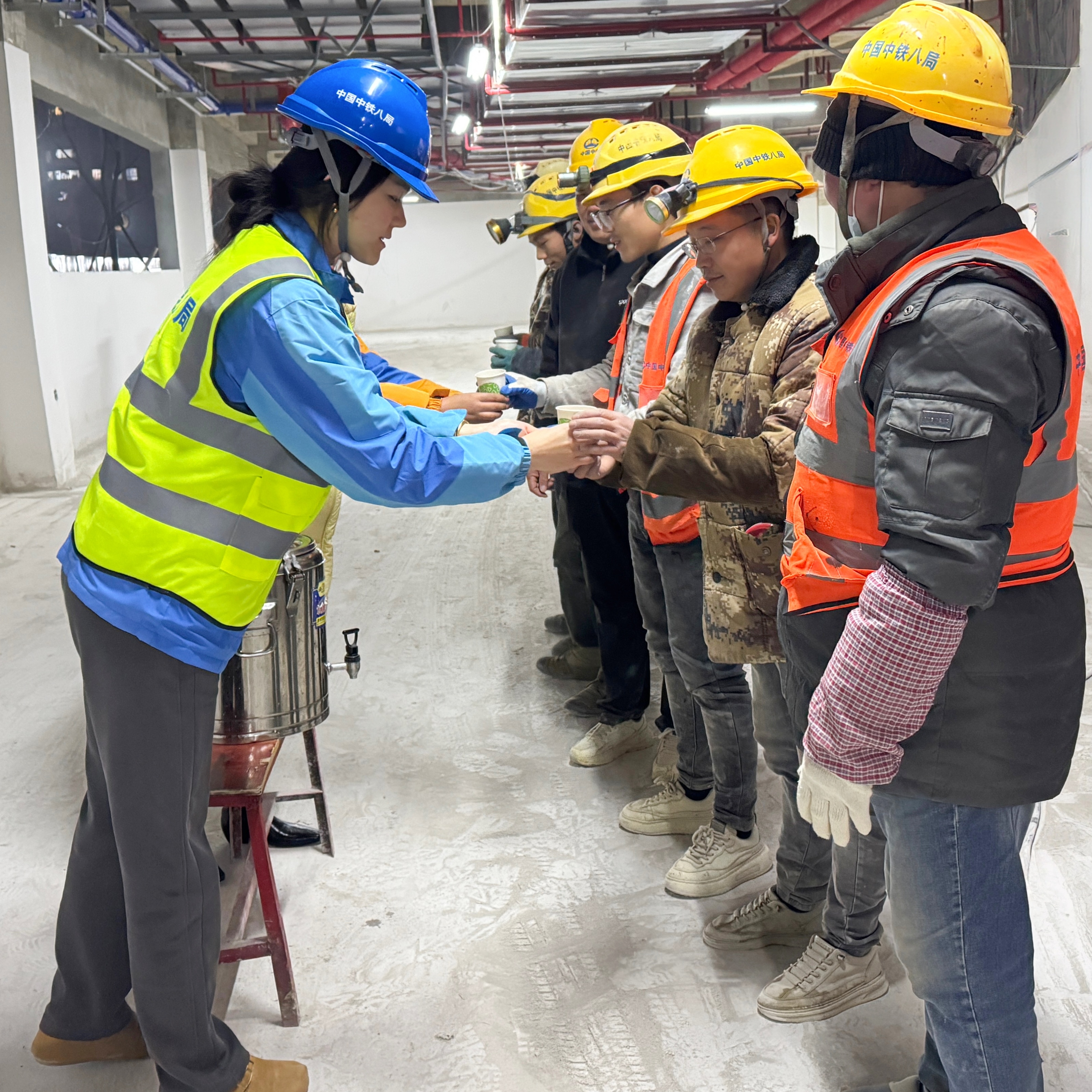 “这姜汤来得及时,身上和心里都暖了。”消防班组赵师傅说道。慰问组成员将精心熬制的滚烫姜汤以及暖贴等防寒物资,逐一送到每位工友手中,并反复叮嘱大家冬季施工务必注意保暖、严守安全规程。目前,项目已进入攻坚抢工阶段,面对低温、工期紧张等复杂条件,项目部全面落实冬季施工专项方案,在确保质量与安全的前提下,科学有序地推进各项作业。
