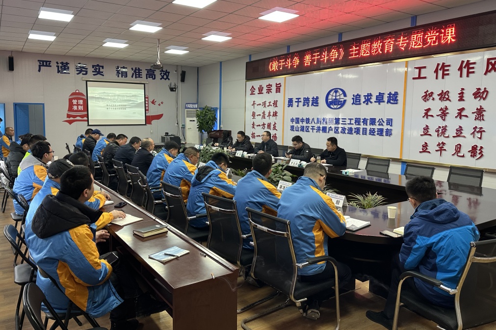 12月21日,集团公司工会工作部部长廖坚到干井项目部讲授以“敢于斗争 善于斗争”为题的主题教育专题党课,公司党委副书记、纪委书记、工会主席程巧利,副总经理康健,工会工作部部长刘海,以及项目全体党员同志参加。