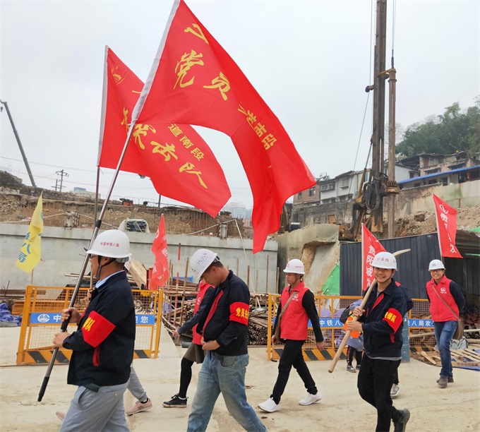 “小型材料要按规格型号分类摆放、材料堆码要上盖下垫、堆码整齐...”活动现场,志愿队互相不停地吆喝着。女生打扫路面、桥面、捡扣件、码螺帽,男生挪泵管、抬钢筋、堆波纹管,在“党员先锋队、青年突击队”两面旗帜的辉映下,志愿队成员们有条不紊地忙着,交织成现场紧张繁忙的画面。
