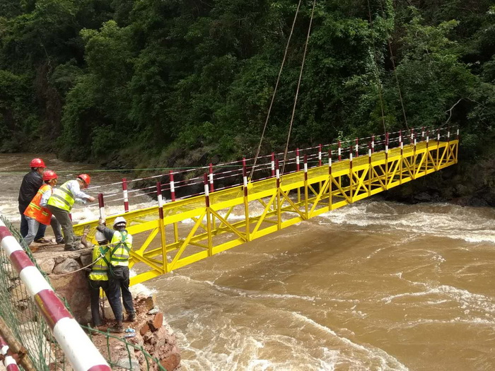 1月2日,由海外公司刚果(金)项目部负责施工的布桑加水电站上坝公路左、右岸人行便桥顺利搭建完工,为上坝公路左、右两岸施工人员的沟通交流和人员调配等带来极大便利。