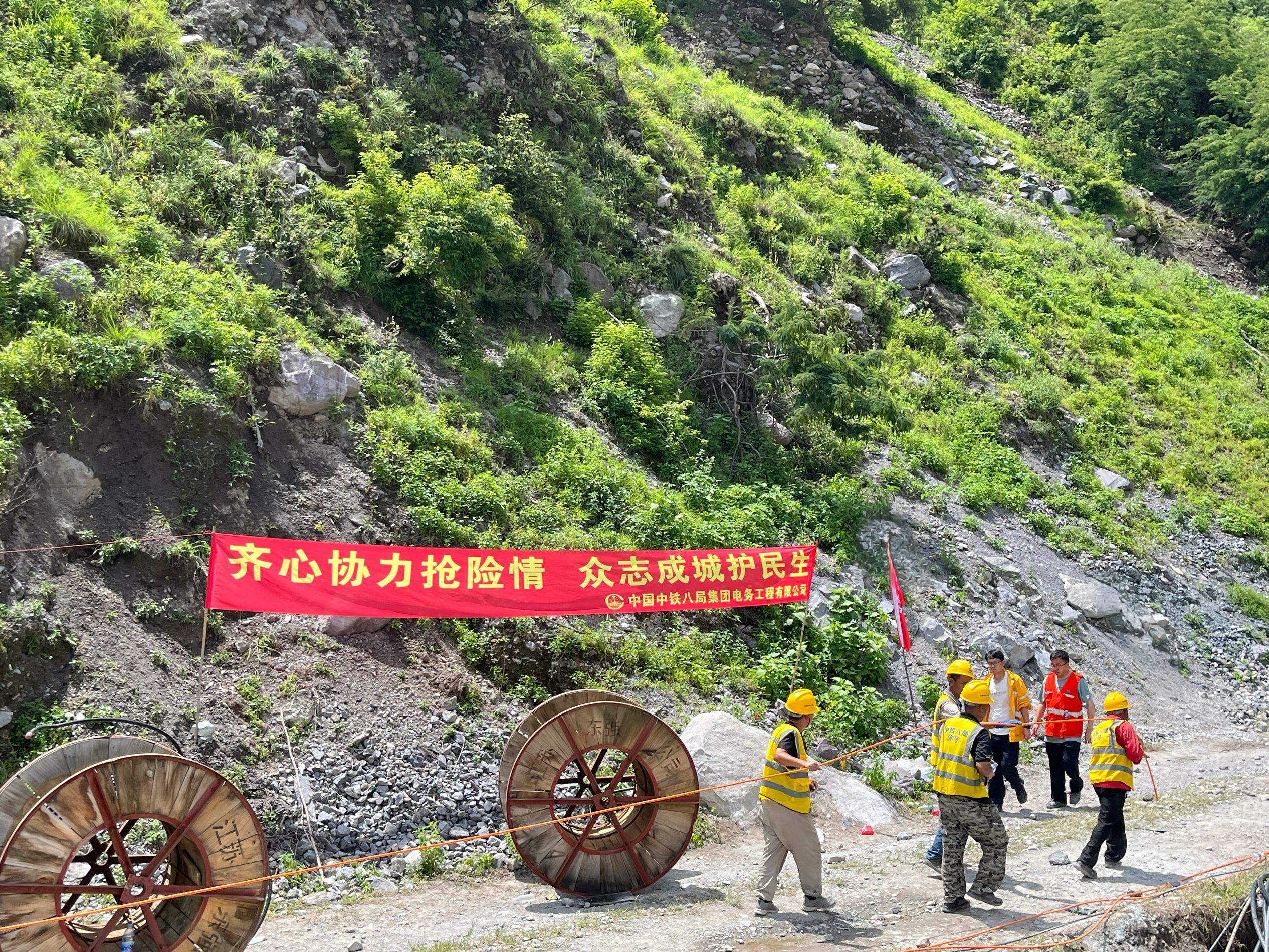 首批抢险人员抵达抢险现场后,成昆线抢险应急组按照成都局集团安排,根据现场形势立即召开现场会,细化人员责任分工,确保抢险物资、安全卡控、管理后勤等得到充分保障,并于当日完成信号楼电缆清理、截断核查,敷设电缆、通信光缆敷设4200米。次日下午,第二批抢险人员100人到达抢险现场立即投入现场工作,进行光、电缆敷设并配合进行站内联锁试验。