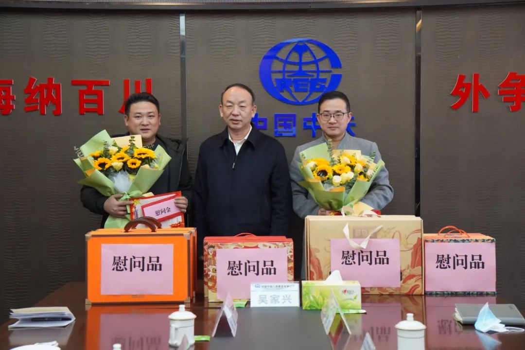 吴家兴首先来到海外公司,为劳模先进和海外一线职工代表送上了慰问品、慰问金、慰问信。之后,吴家兴在会议室与劳模先进和海外一线职工代表进行了亲切座谈,了解他们的工作与生活情况,并代表集团公司党政工团感谢他们为集团海外事业付出的努力和作出的贡献,鼓励他们要坚持创新发展理念,弘扬劳模精神、劳动精神、工匠精神,为实现“强局梦”添砖加瓦。