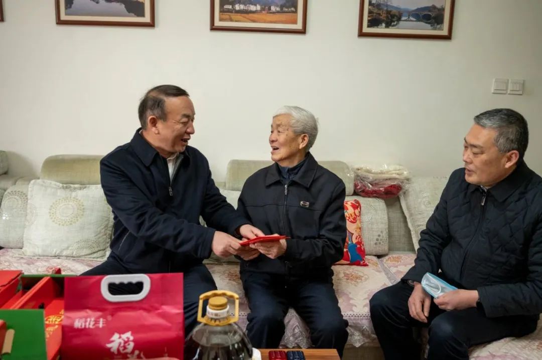 在谢腊英家里,钟俊亲切询问了谢老的饮食起居、身体情况,并从经营开发、项目管理、党建工作等方面向谢老介绍了集团公司近年来持续向好的发展状况和深化改革的情况。钟俊表示,这些成绩的取得,离不开各位老前辈的关心支持、无私奉献。钟俊叮嘱谢老要保重身体,并代表企业为其送上新春祝福。