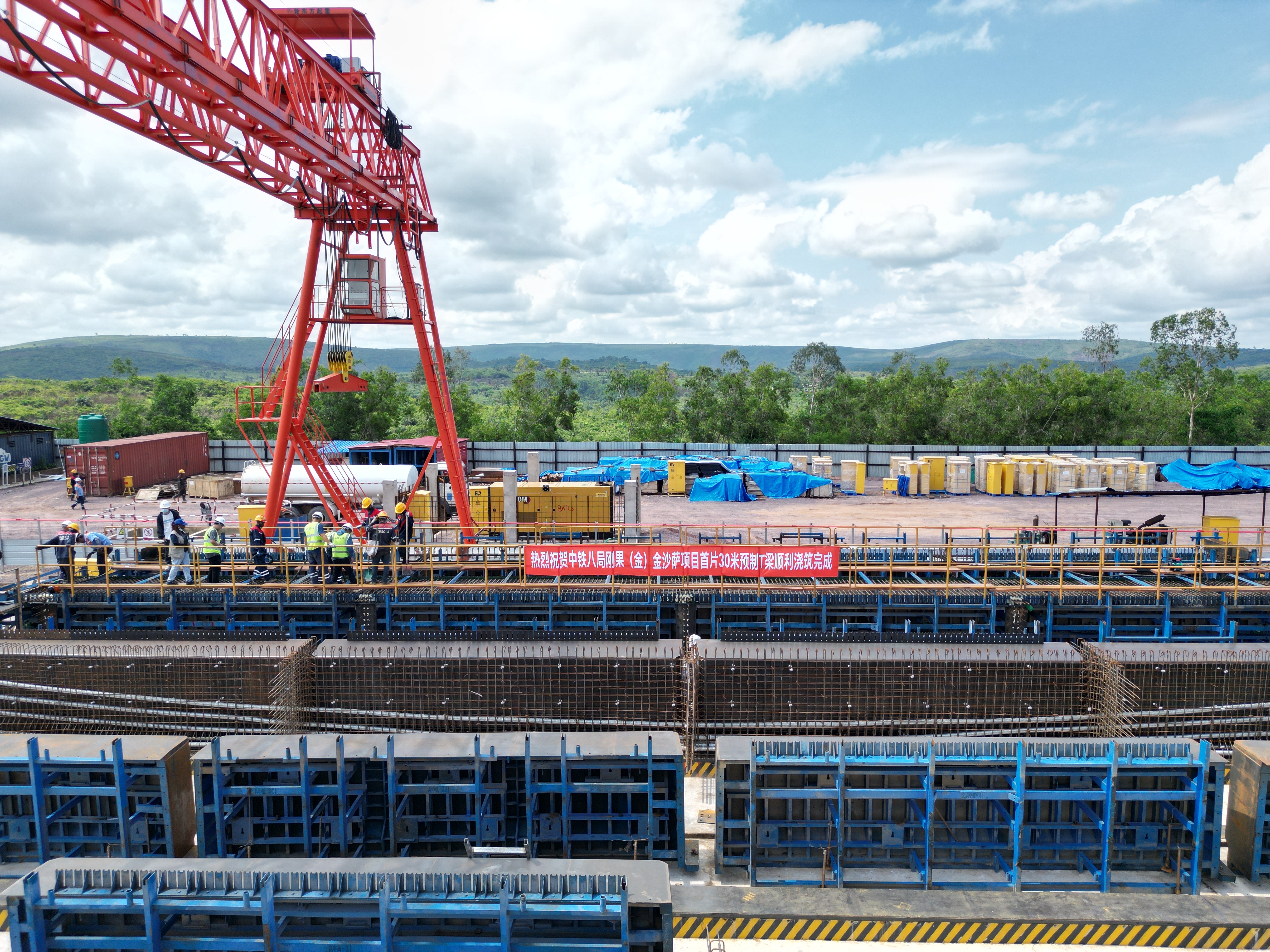 当地时间11月17日,随着最后一方混凝土缓缓注入T梁模板,集团公司承建的刚果(金)金沙萨环线公路项目首片30米预制T梁顺利完成浇筑。这一关键节点的突破,标志着该项目桥梁上部结构施工全面启动,工程建设迈入新阶段。