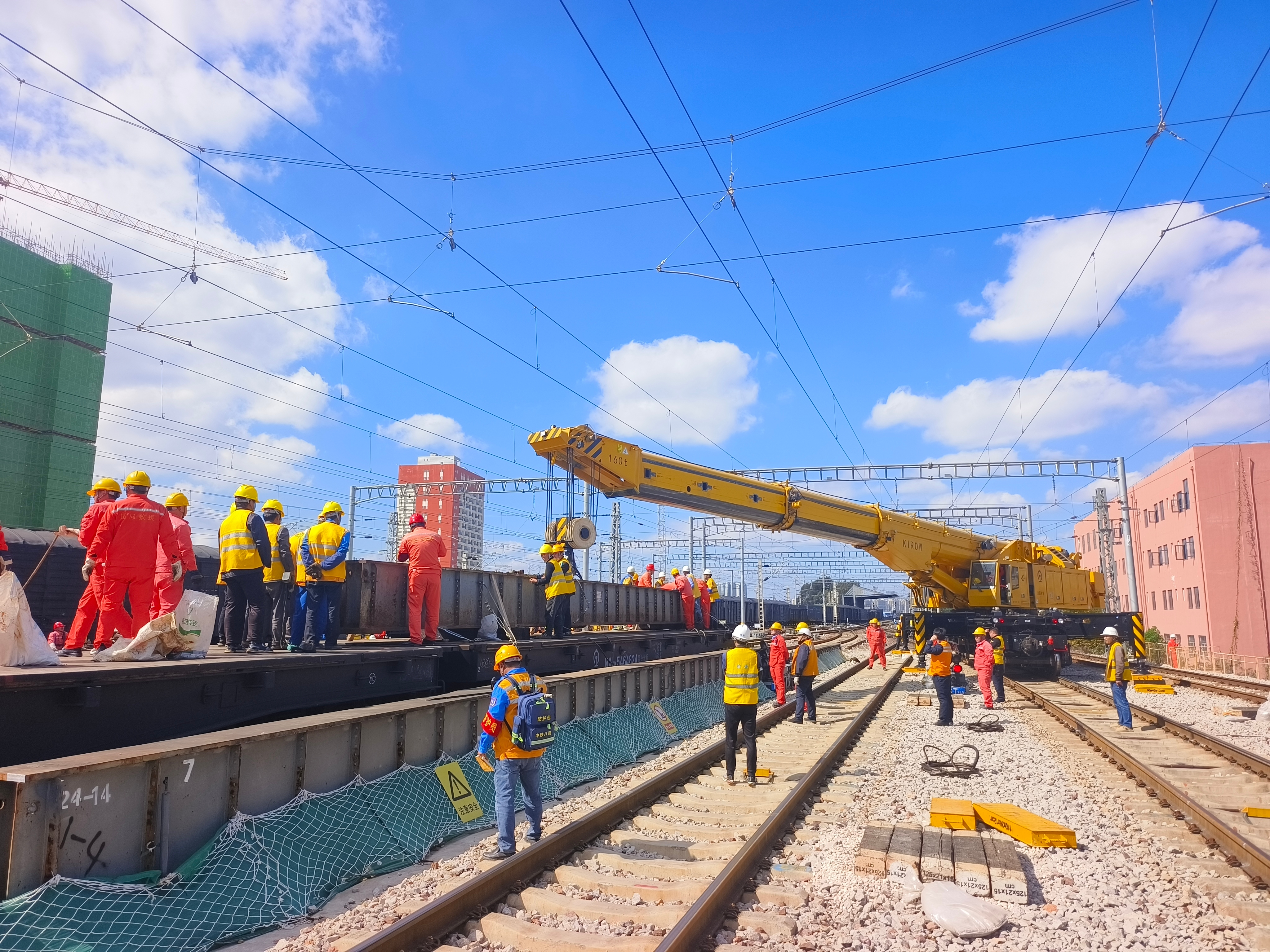 D型便梁拆除作业位于昆明东站下行到达场“咽喉”部位,施工期间需同步实施线路封锁与接触网停电,项目建设面临时间紧张、作业空间狭小、临近设备复杂、吊装重量大、高空作业多等挑战,且施工涉及昆明东站、昆明工务段、昆明电务段、玉溪供电段等多个铁路设备管理单位,协调难度大。