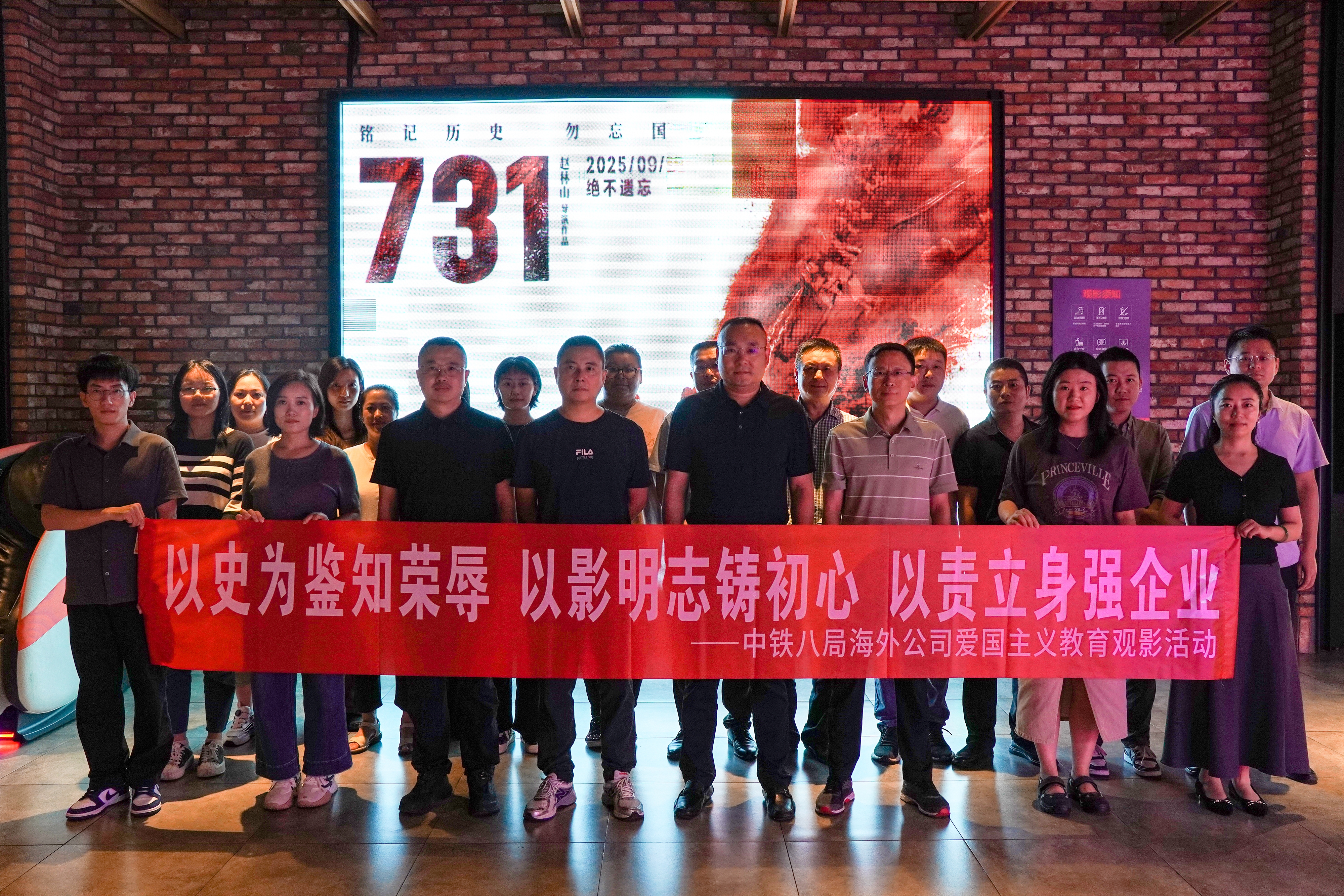在国庆节即将来临之际,为深化爱国主义教育,引导职工从历史中汲取奋进力量,将爱国情怀与企业发展紧密结合,9月25日,中铁八局海外公司工会以“以史为鉴知荣辱 以影明志铸初心 以责立身强企业”为主题,组织本部全体职工集中观看爱国主义影片《731》,在重温历史记忆中坚定责任担当,为企业高质量发展注入精神动力。
