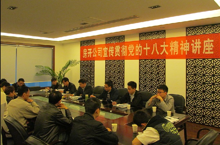 3月27日,根据公司学习十八大精神活动总体安排,由公司党委副书记、纪委书记刘勇和公司党委工作部成员组成的十八大精神宣讲团组织中铁•丽景书香项目、中铁•骑士公馆项目和园林公司在中铁•丽景书香项目部集中宣讲十八大精神。