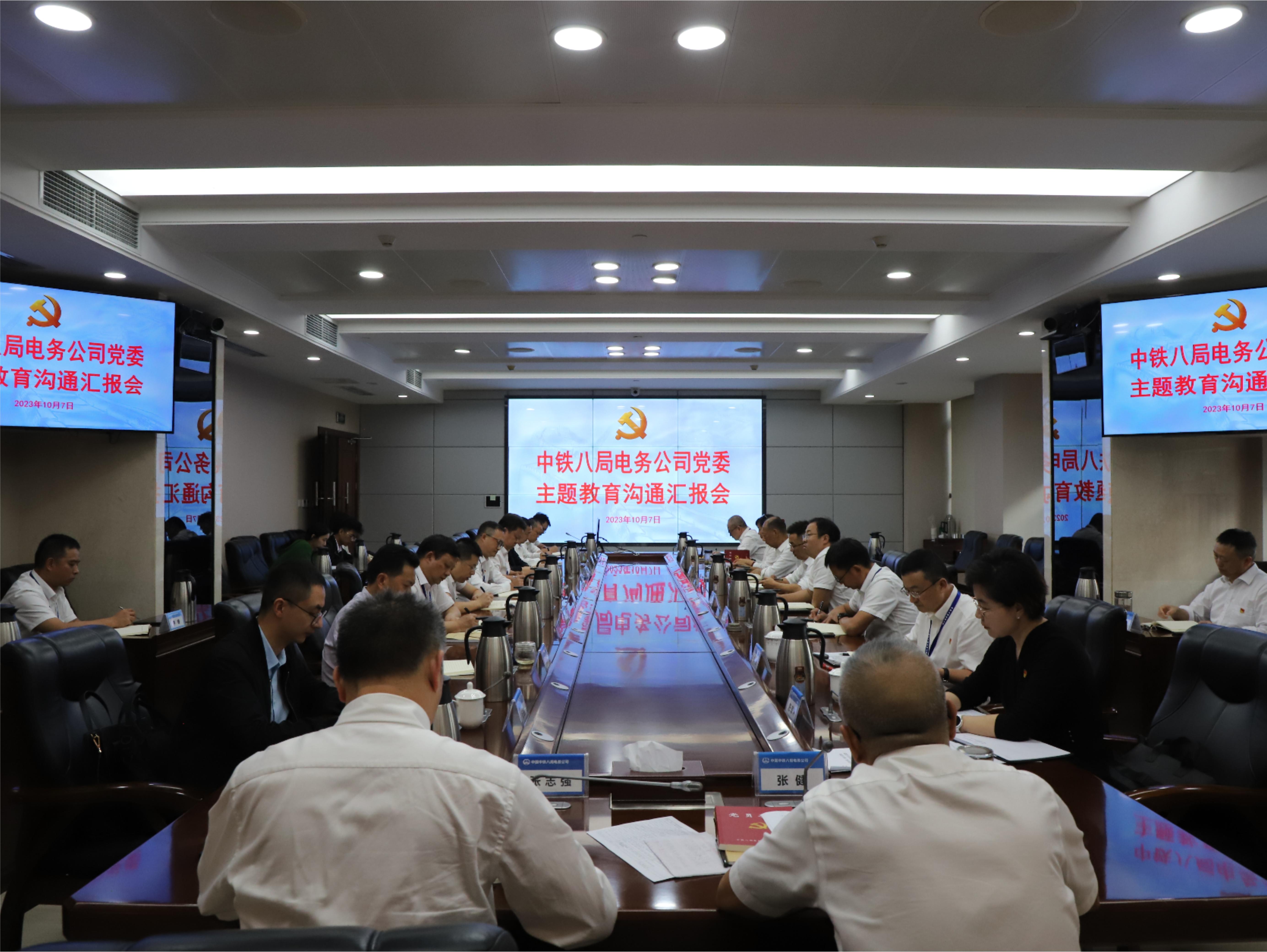 10月7日,中铁八局电务公司党委在公司本部召开了主题教育沟通汇报会。中铁八局党委第五联络组副组长陈家玲、联络组成员肖玉鹏到会指导,公司党委书记、执行董事张健主持会议并讲话,党委副书记、总经理张志强等主题教育领导小组成员参加会议。