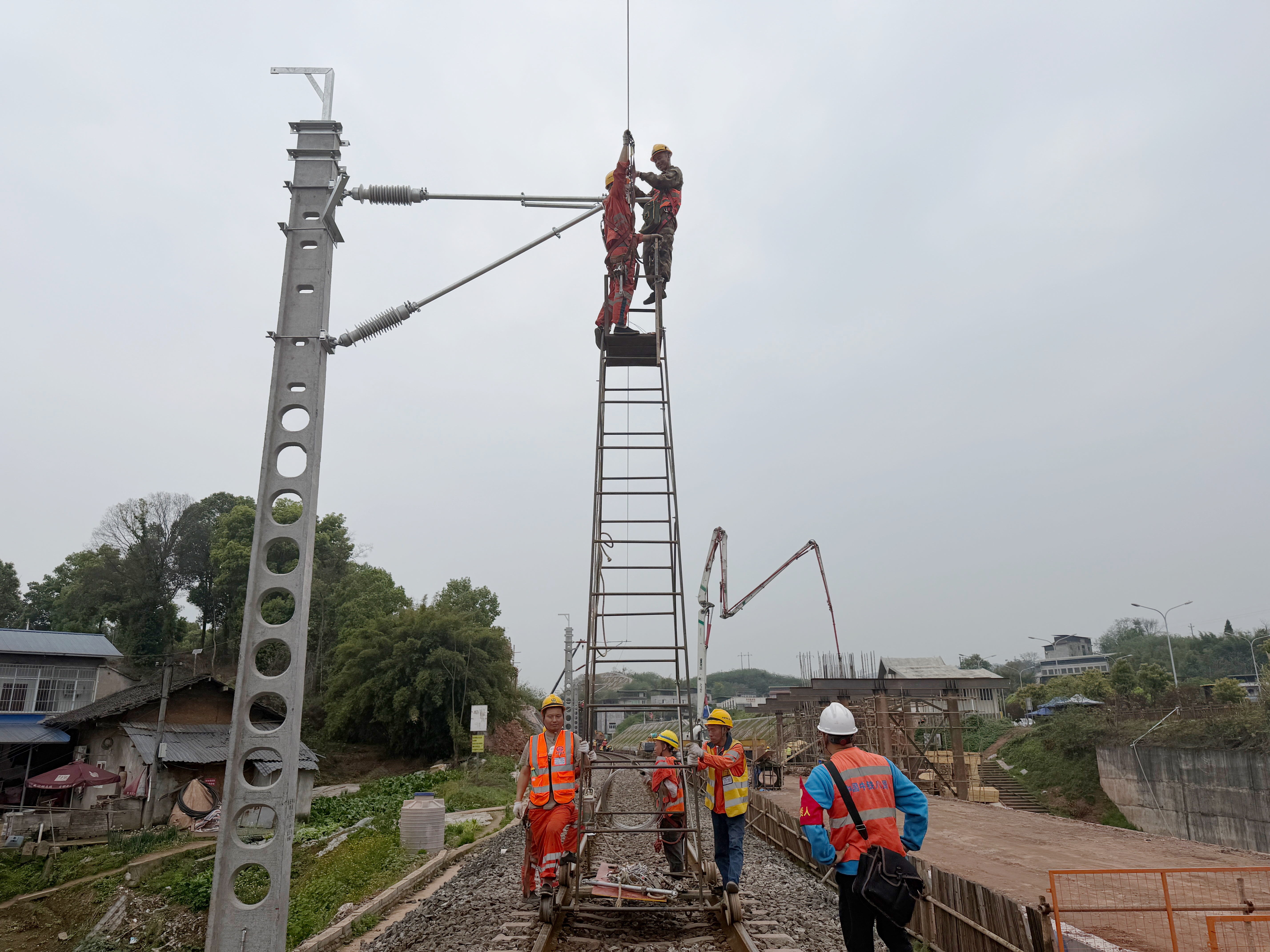 成渝铁路重庆站至江津站段改造工程首条接触网承力索架设成功