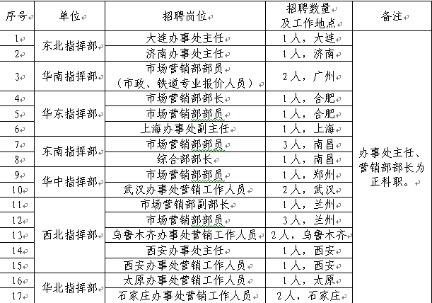 为满足企业区域市场发展对营销人才的需求,中铁八局集团有限公司现面向社会公开招聘区域指挥部及办事处经营管理人才,现将有关事项公告如下: