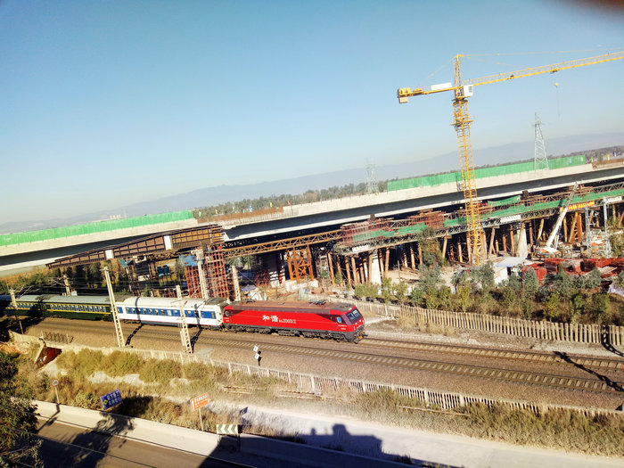 通过精心组织、科学部署,在现场100多名施工人员的努力下,嵩昆高速杨林东特大桥跨越铁路段近万吨的“庞然大物”沿预定的轨迹精准前行了近130米,箱梁顶推施工成功跨越沪昆铁路和G320国道,攻克了嵩昆高速公路尽早通车的一大堡垒!