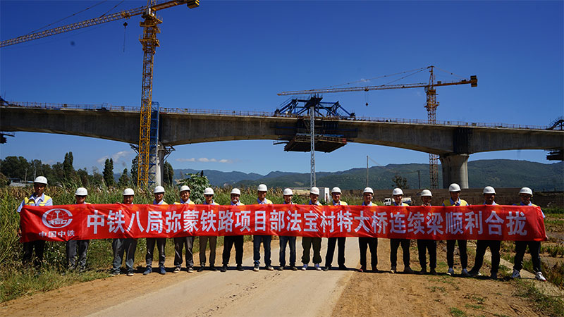 弥蒙铁路法宝村双线特大桥顺利合龙