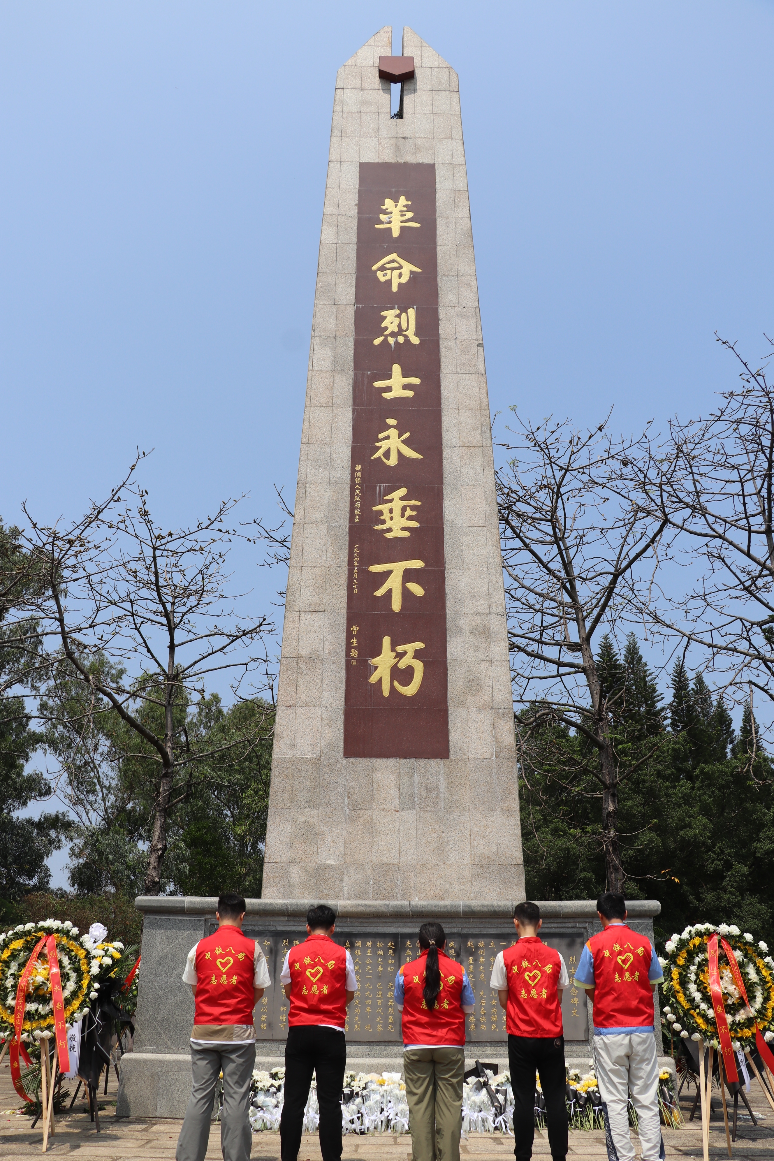 活动中,全体青年整齐列队,向革命烈士敬献鲜花并三鞠躬,深切表达对先烈的崇高敬意。随后,大家缓步瞻仰纪念碑,仔细阅读底座黑色大理石上镌刻的碑文,驻足凝视“烈士芳名录”上陈国基等38位烈士的英名,深刻感悟观澜子弟在烽火岁月中百折不回、赴死如归的英雄气概。