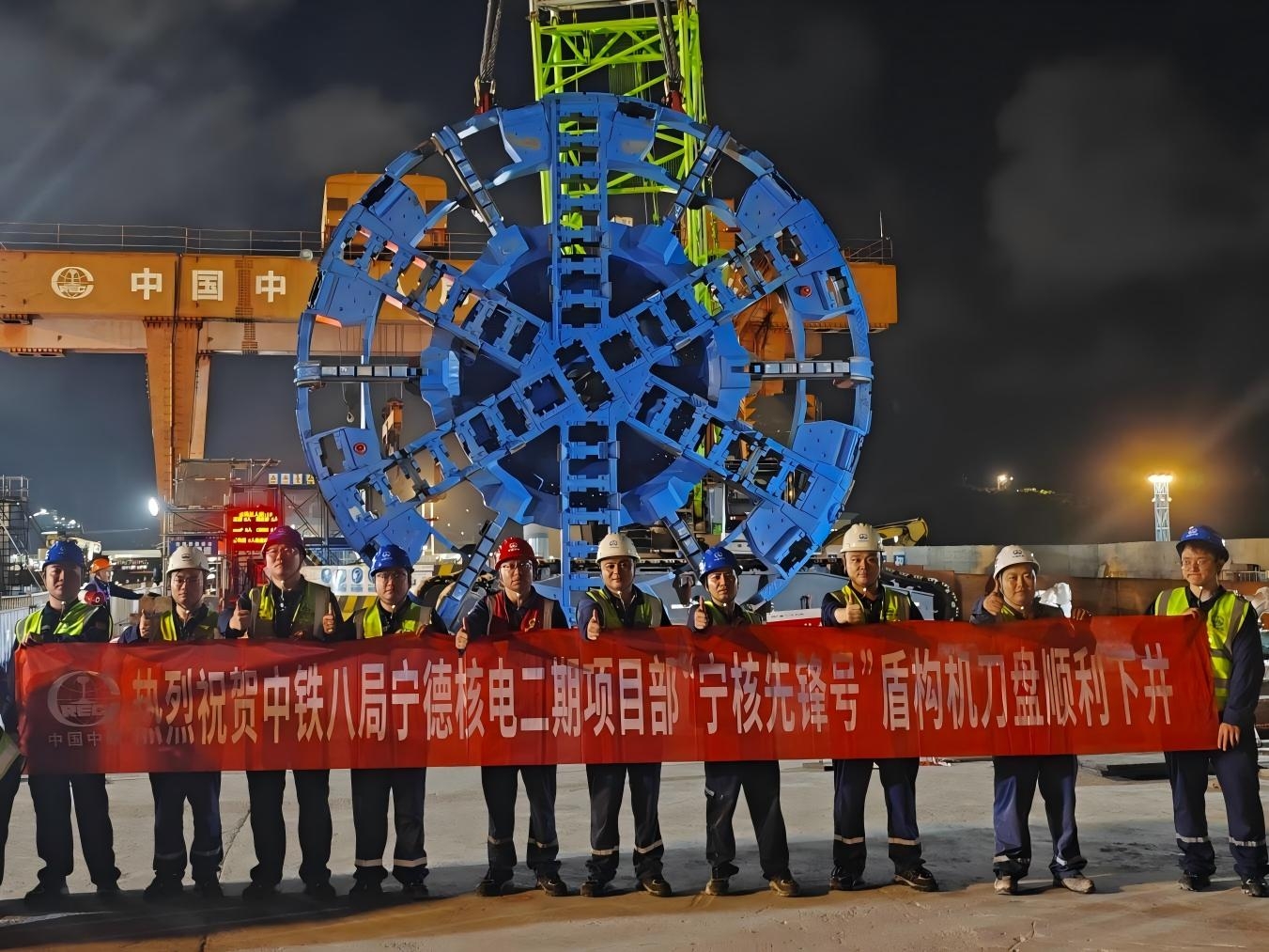 8月24日晚,中铁八局宁德核电二期项目“宁核先锋号”盾构机刀盘顺利吊装下井。