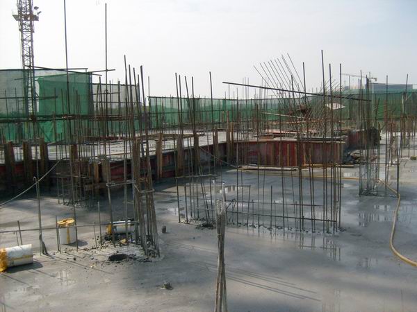 承接该工程后,公司立即组建了榕树嶺项目部,并于4月份进场。由于地震影响,该工程6月上旬才正式开工。甲方要求先施工4号楼,并要求在9月3日前必须施工至±0.00。在还不到50个工作日内,项目部精细组织、严格管理,战高温、斗酷暑,克服了重重困难,确保安全、质量的前提下,顺利完成了基础检底、换填、垫层、防水及钢筋混凝土筏板、负一层、负二层等项目的施工。