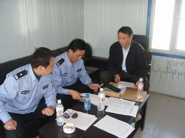 图为8月30日中铁八局集团公安分处国庆安保第六检查组对二分部炸药库炸药采、供、管及使用情况的台帐资料进行了全面的检查,高度赞扬锡乌项目部对炸药管理“领导重视、手续齐全、制度规范、使用安全”。