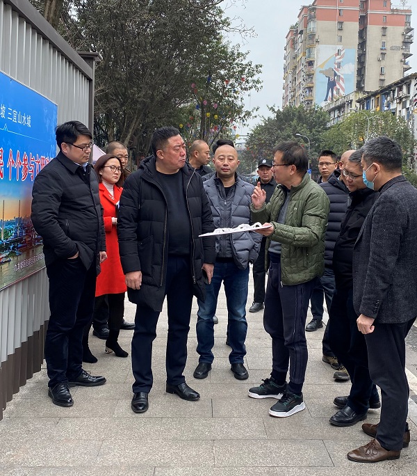 12月16日下午,重庆市九龙坡区委常委罗林泉一行到公司涂鸦街项目部施工现场进行调研。四川美术学院、区住房城乡建委、区城市管理局、黄桷坪街道办事处、九龙半岛开发建设公司和公司涂鸦街项目部相关人员陪同。